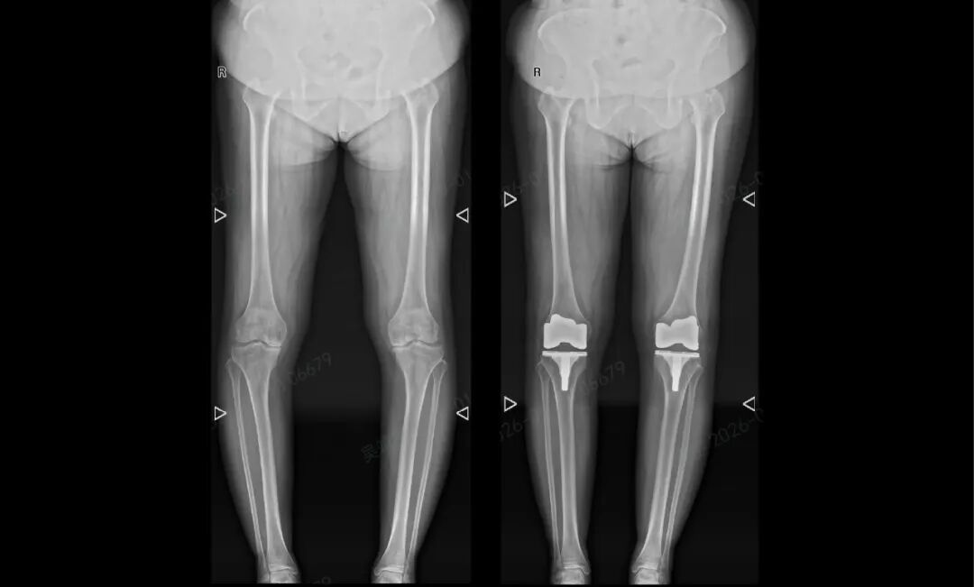 手术结束后,患者张阿姨的膝关节畸形得到矫正,疼痛感明显改善。令人欣慰的是,她在术后次日便能自主站立,目前已顺利开展功能康复训练,逐步向正常行走目标推进。